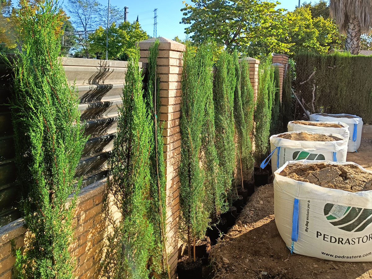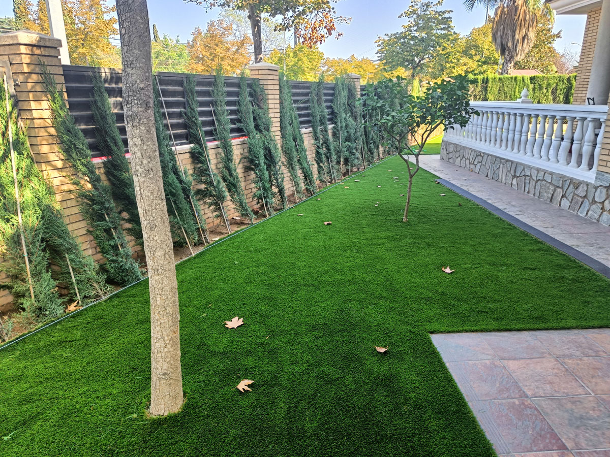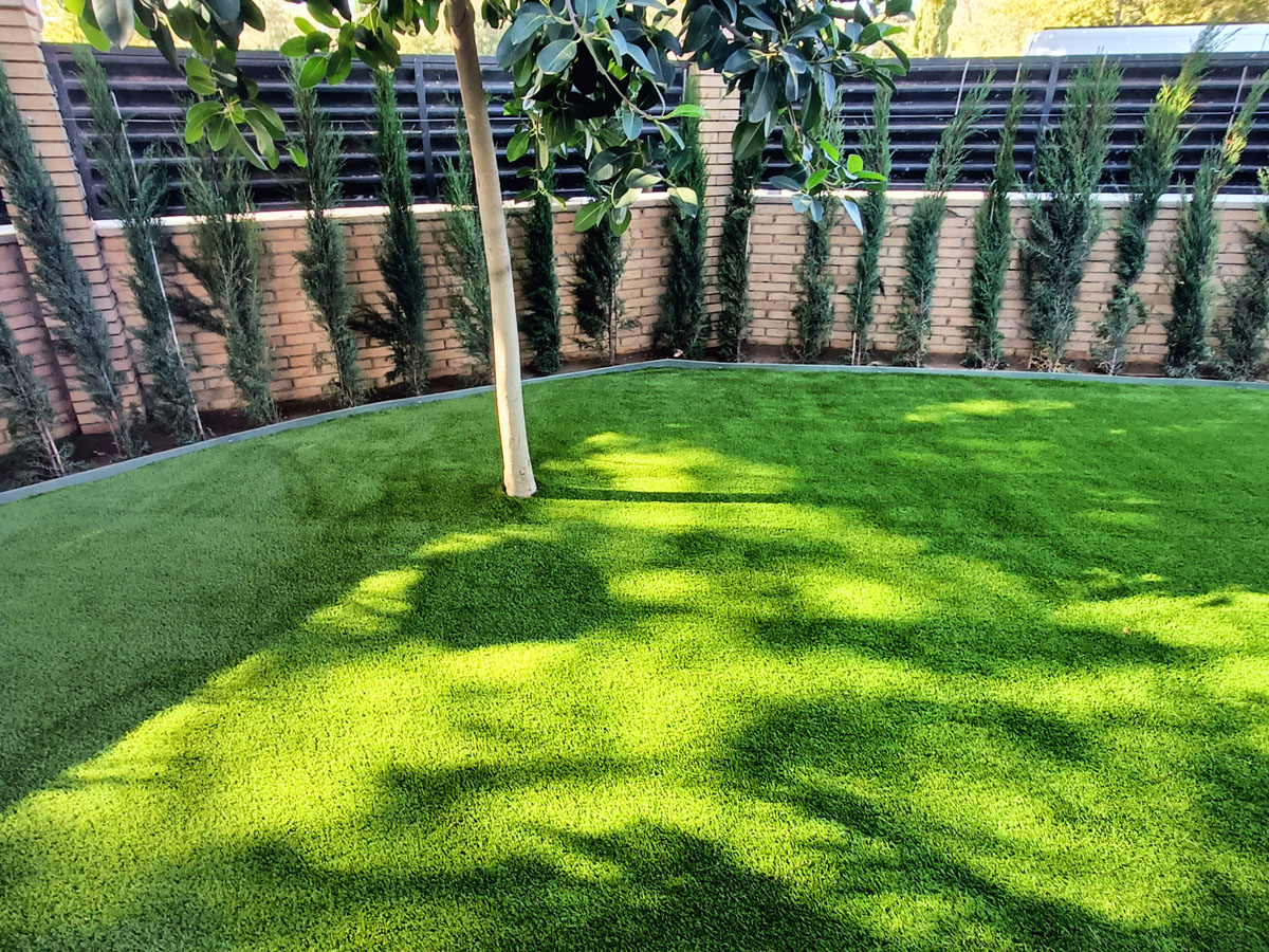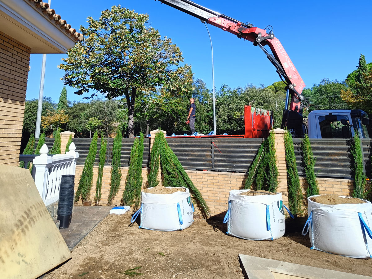 Enjardinament unifamiliar amb gespa artificial i plantació de seto de xiprer