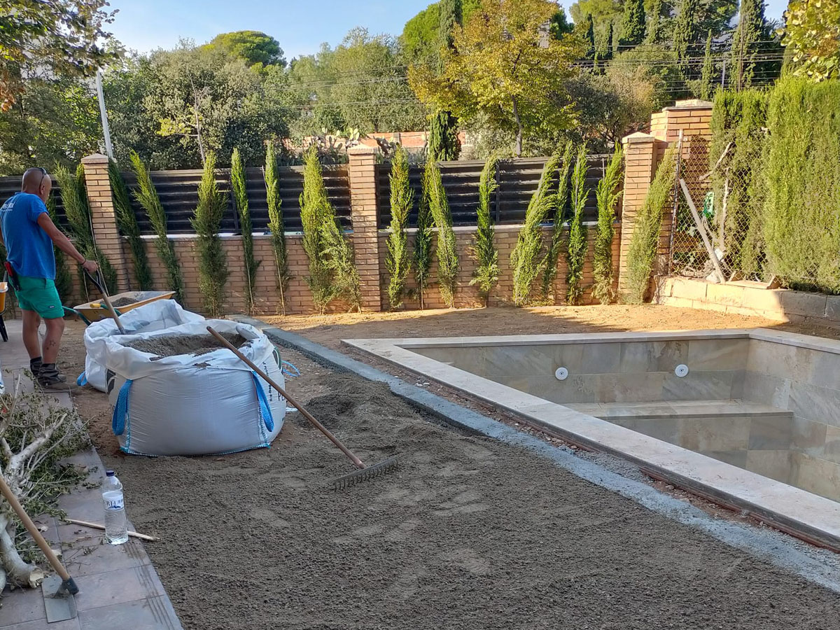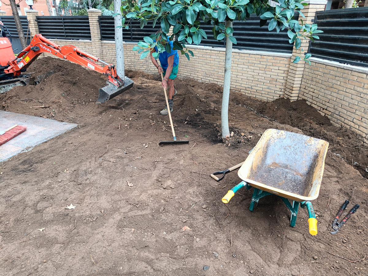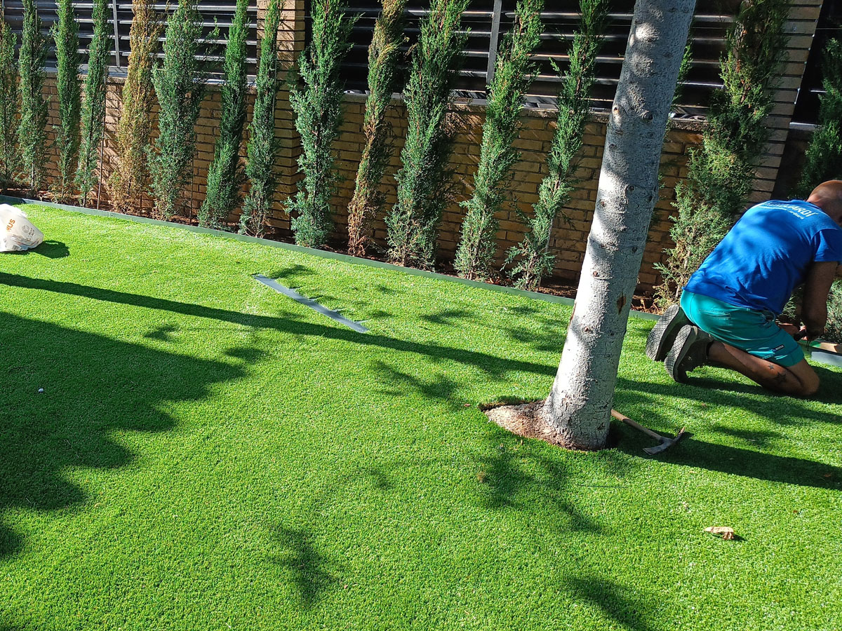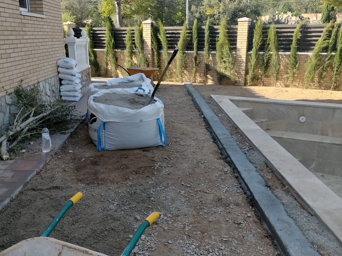 Enjardinament unifamiliar amb gespa artificial i plantació de seto de xiprer