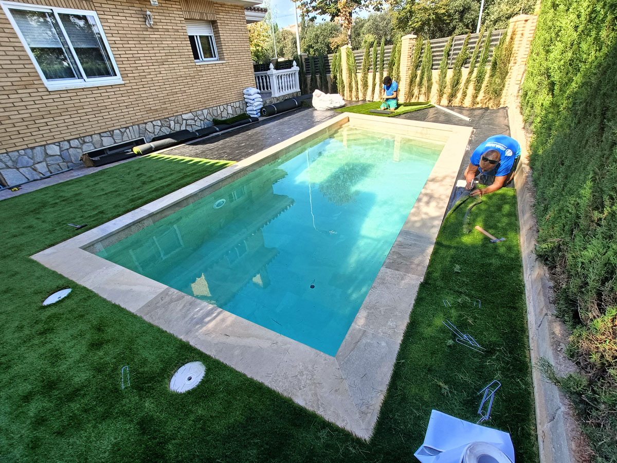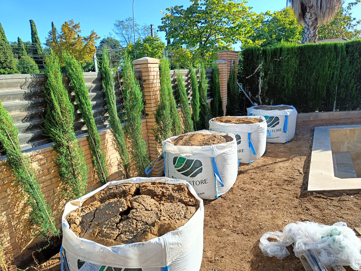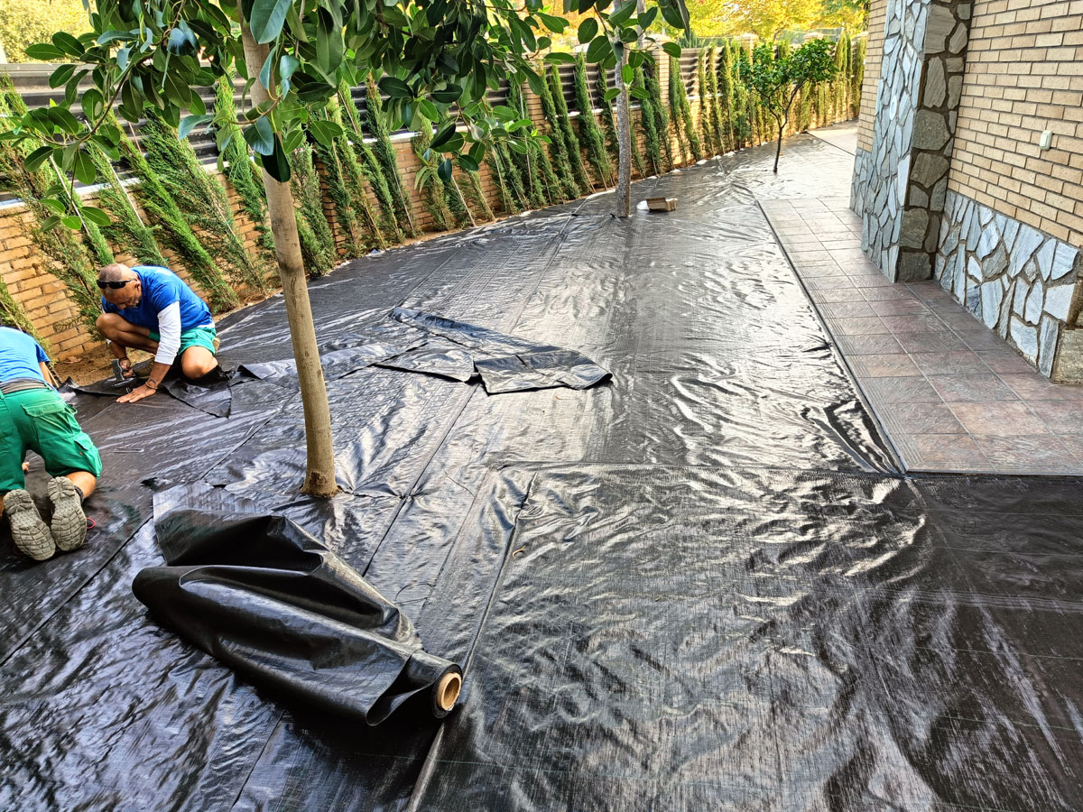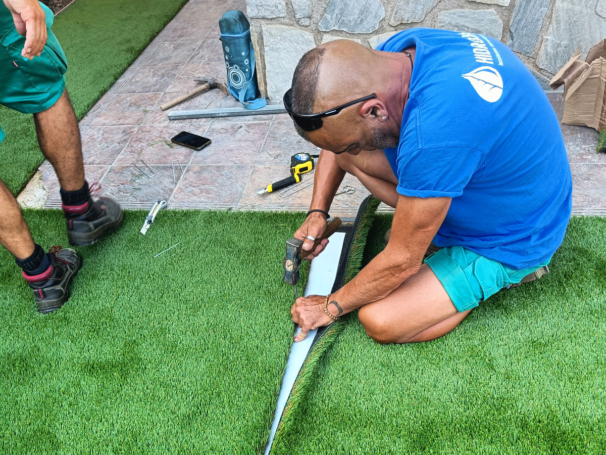 Enjardinament unifamiliar amb gespa artificial i plantació de seto de xiprer