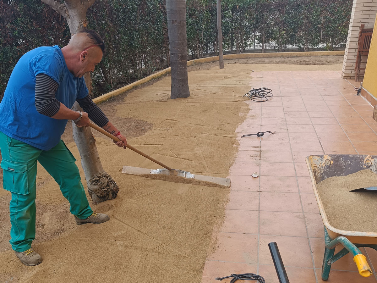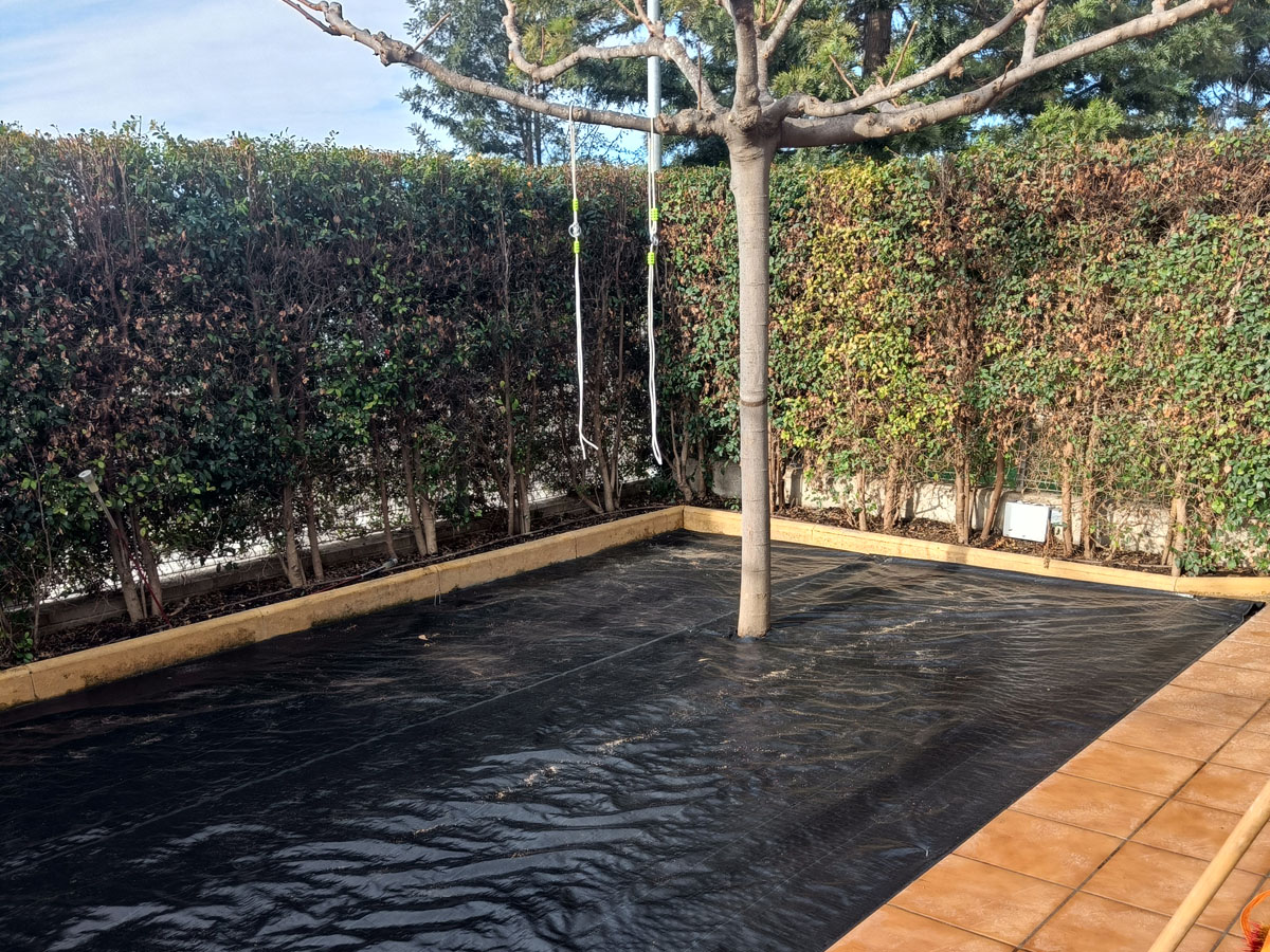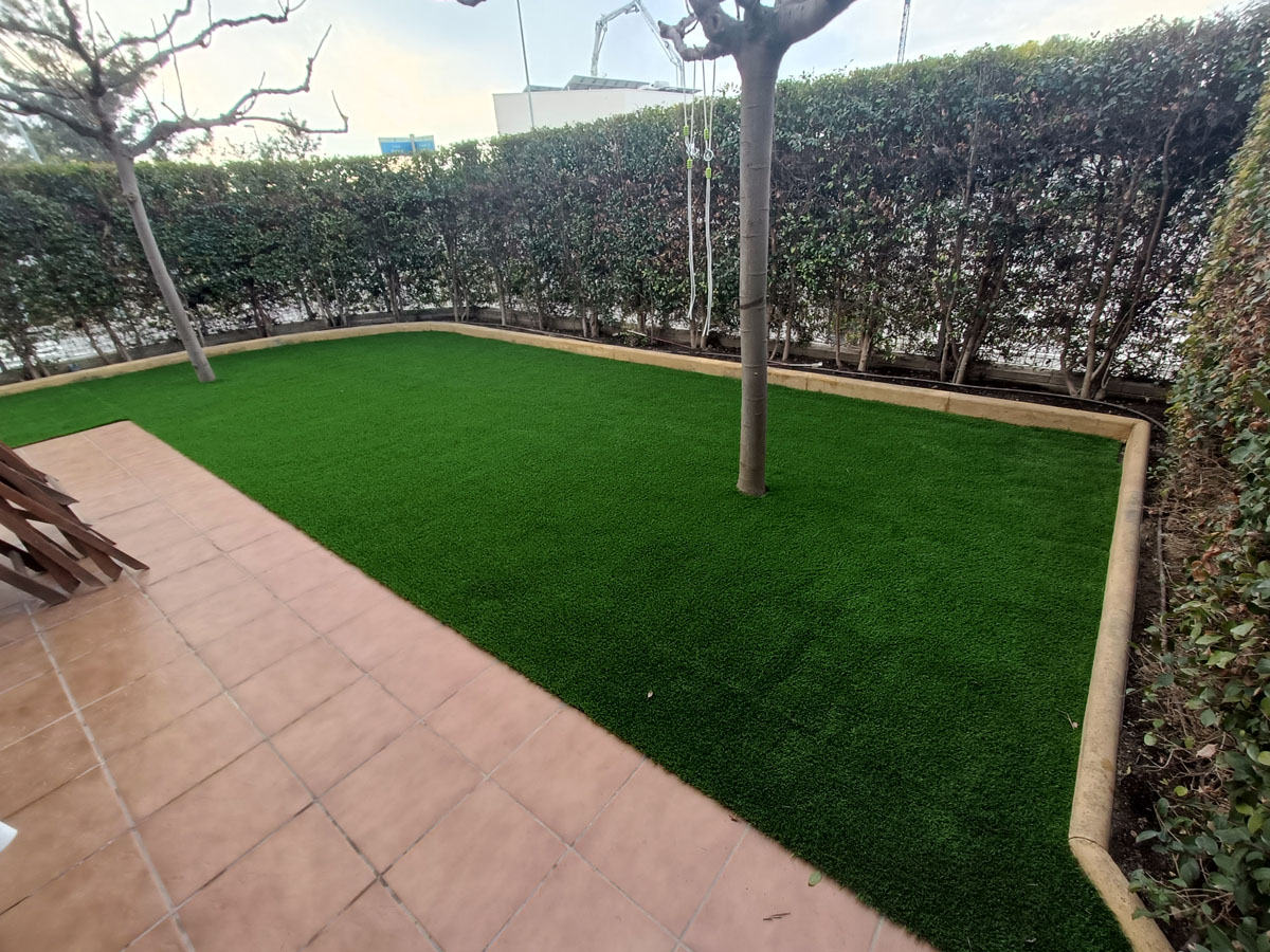 Instal·lació de gespa artificial en petit jardí unifamiliar