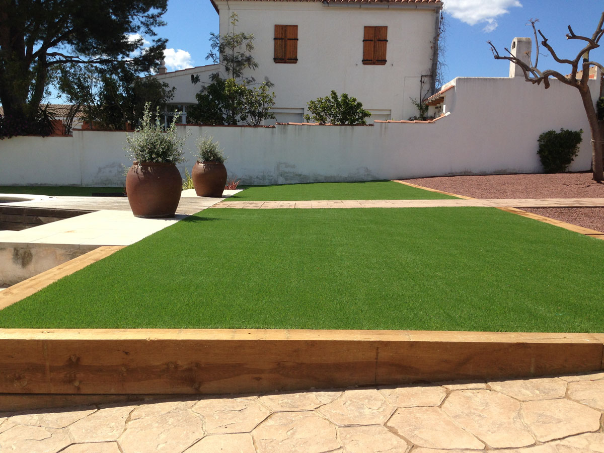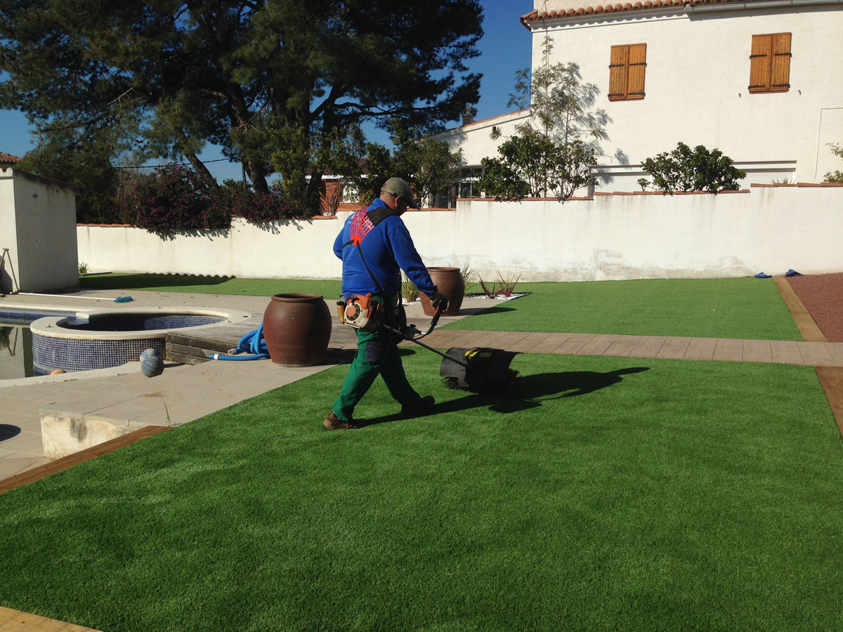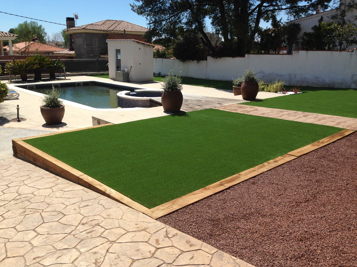 Restauració del jardí d'una casa unifamiliar amb gespa artificial