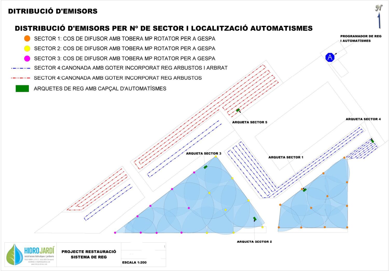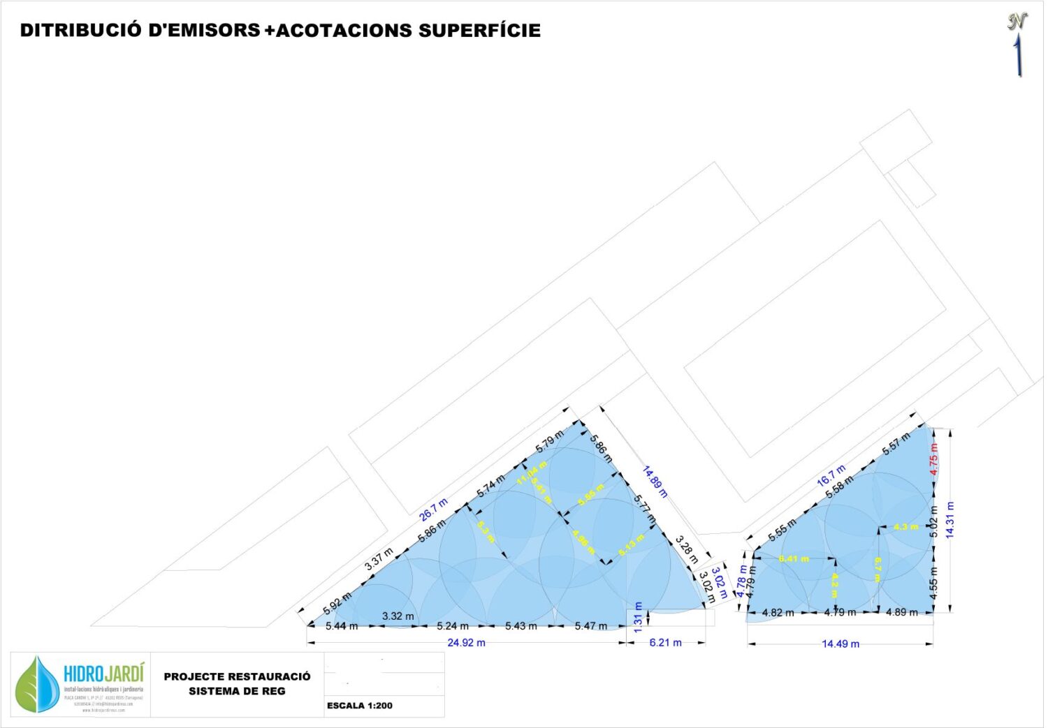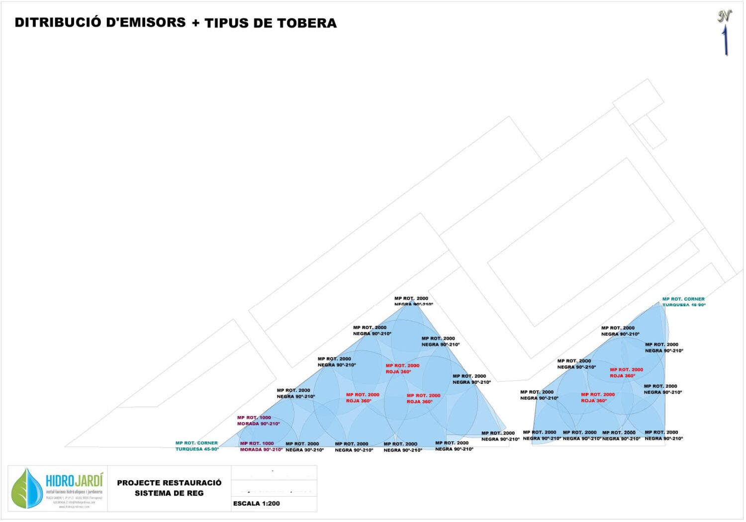 Cada jardí i zona verda és diferent. Per això, el primer pas per instal·lar un sistema de reg automàtic és dissenyar-lo. A Hidrojardi, realitzem un estudi personalitzat del teu jardí per determinar les seves necessitats específiques tenint en compte factors com la mida del jardí, el tipus de plantes que hi ha plantades, zones de gespa, topografia del terreny, condicions climàtiques, hores d’insolació directa, caudal i pressió de la xarxa d’aigua, etc… calculem i dissenyem el sistema de reg assegurant-nos que sigui eficient i sostenible.